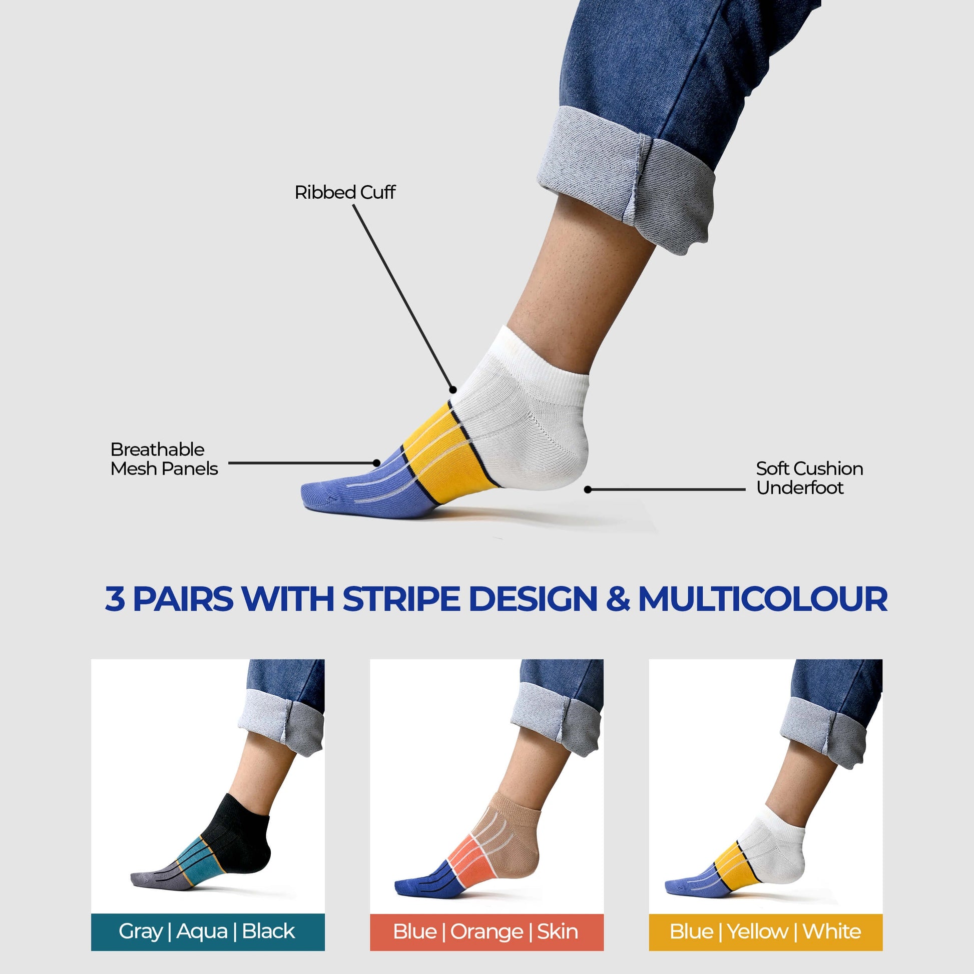 Men's cotton unisex low cut ankle length socks (Pack of 3 pair)